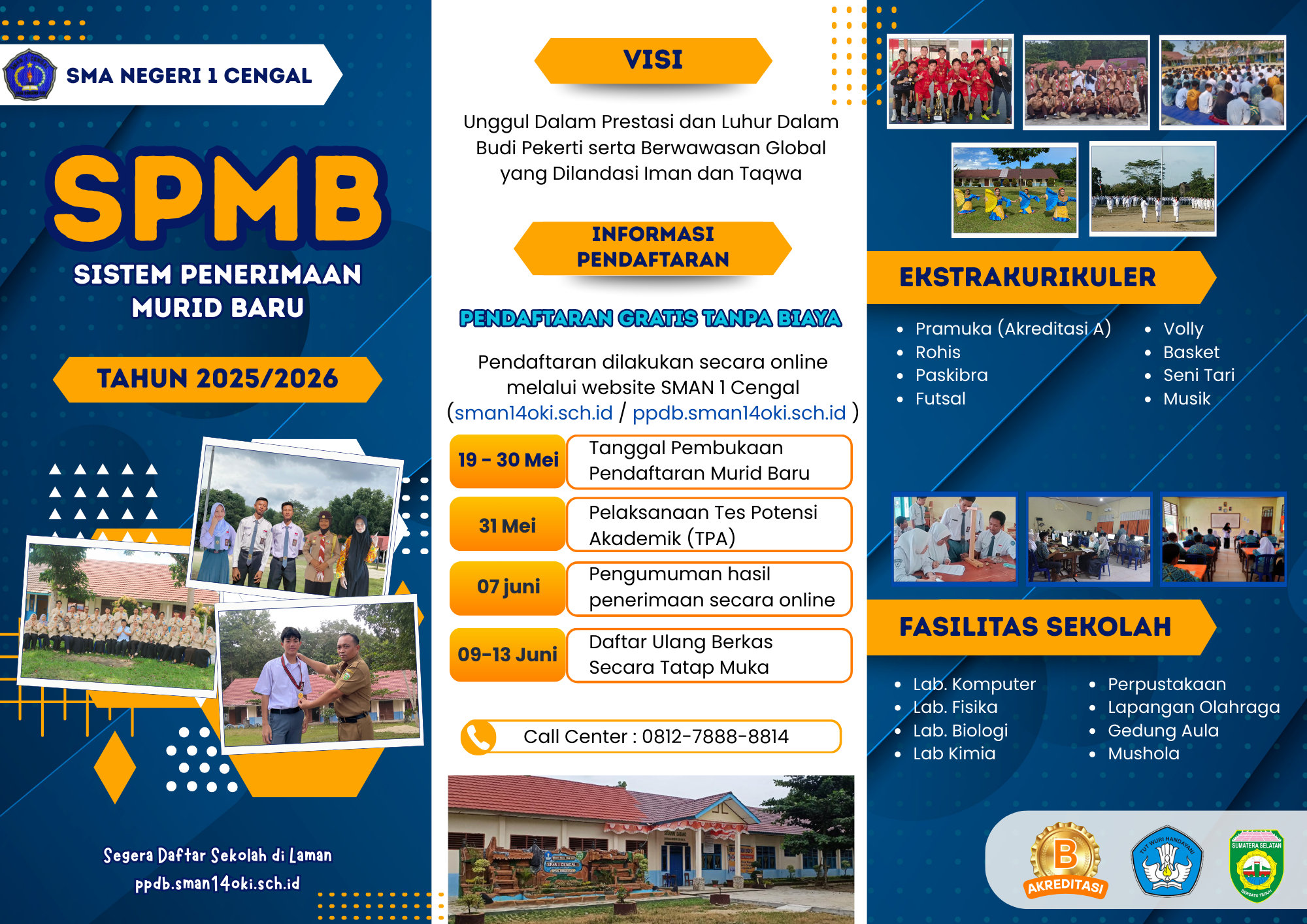 SMAN 1 Cengal akan segera membuka pendaftaran untuk murid baru tahun ajaran 2025. Dalam rangka meningkatkan kualitas pendidikan dan pelayanan, dengan pendaftaran online diharapkan calon murid baru ...